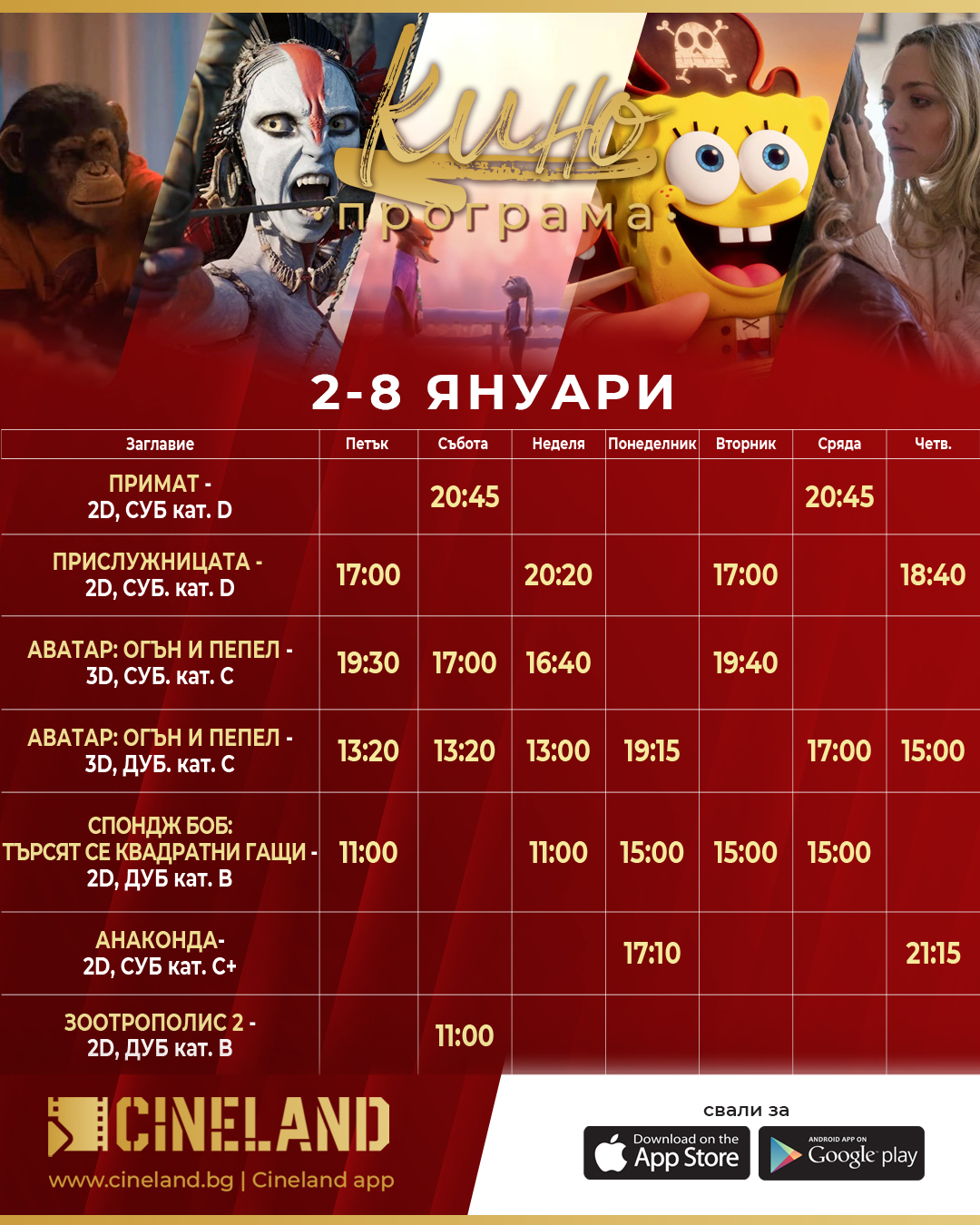🎥 Кино програма „CineLand Търговище" - 02.01 – 08.01.2026 г.