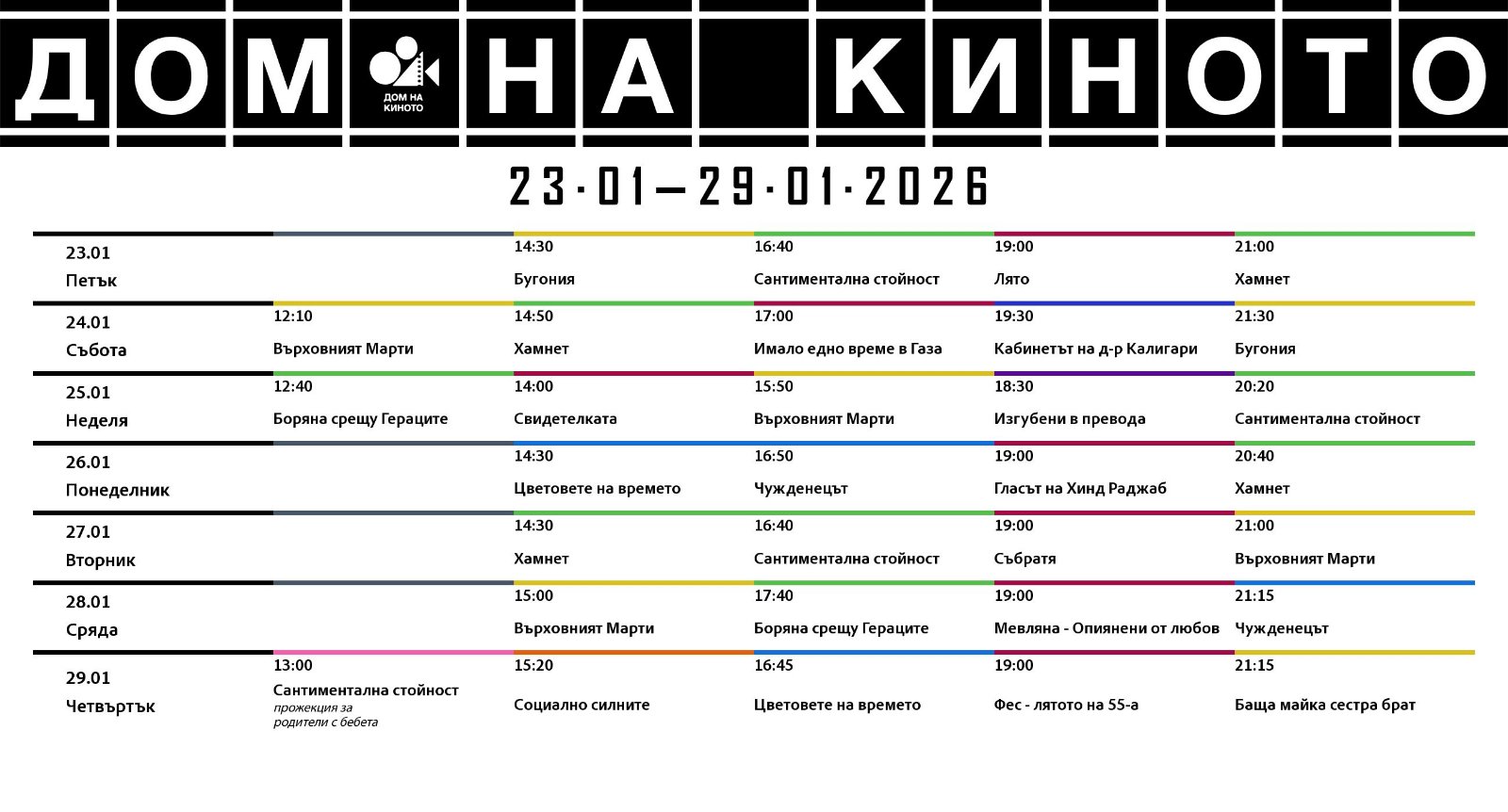 🎥 Кино програма „Дом на киното" - 23.01 – 29.01.2026 г.