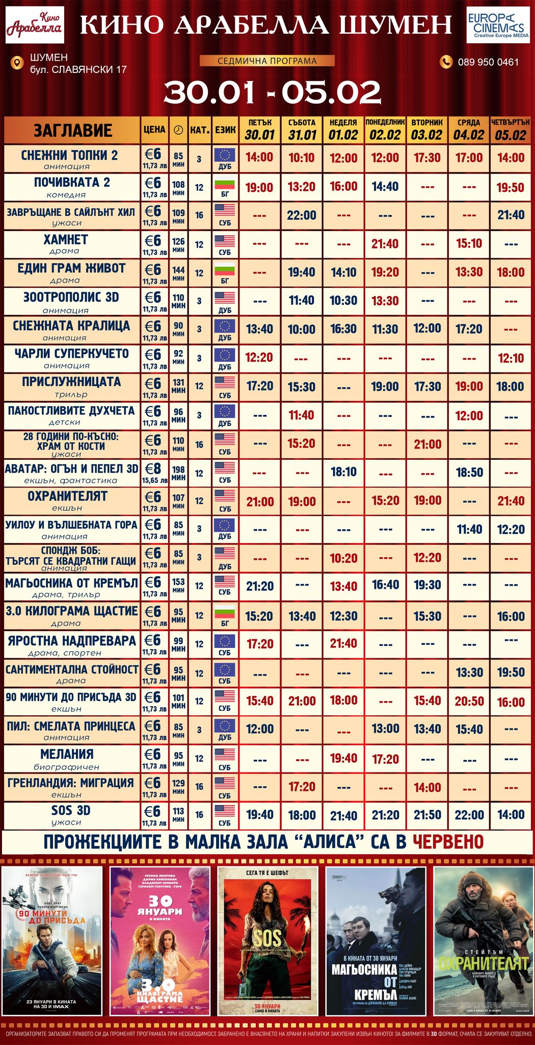 🎥 Кино програма „Кино Арабелла Шумен" - 30.01 – 05.02.2026 г.
