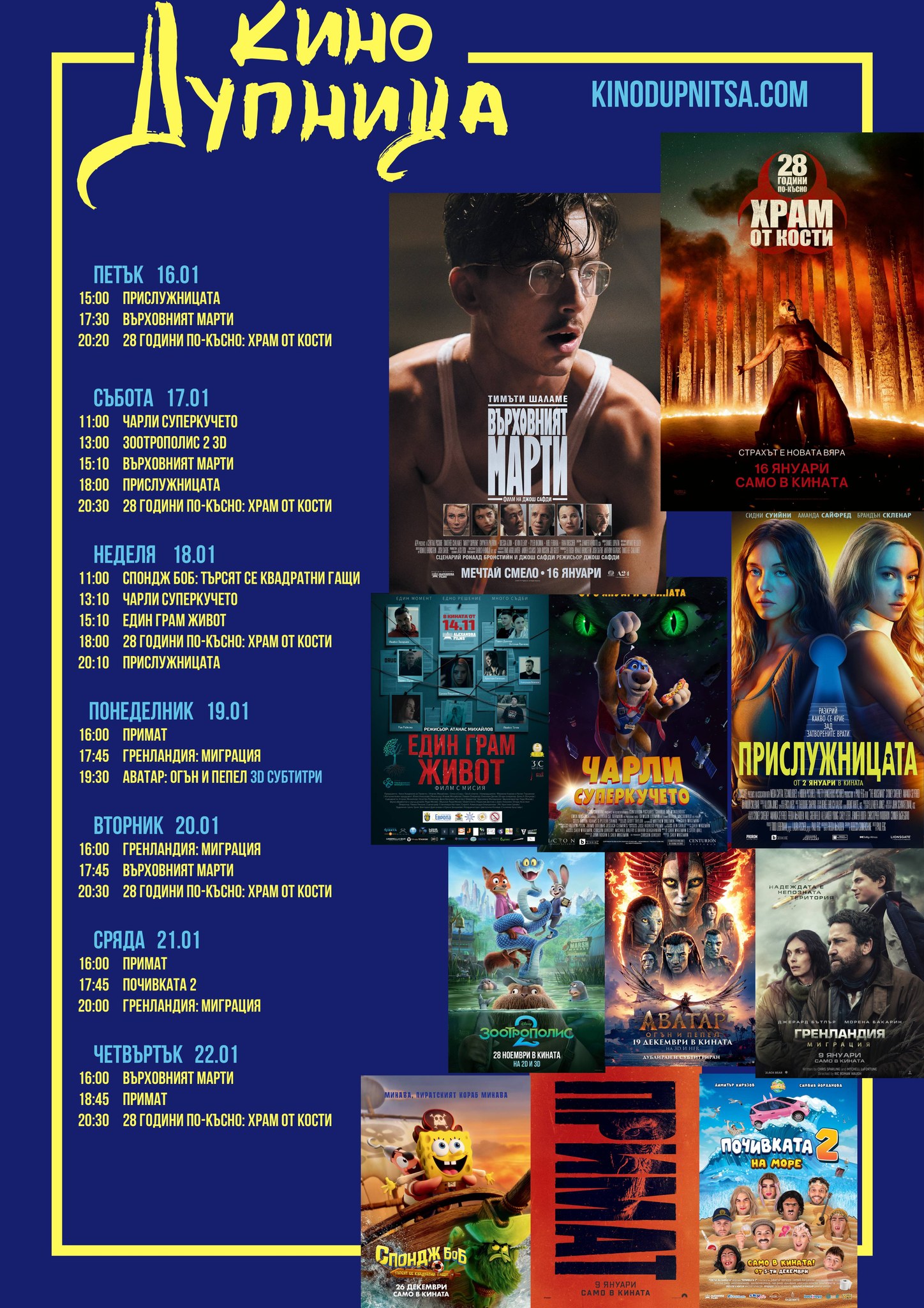 🎥 Кино програма „Кино Дупница" - 16.01 – 22.01.2026 г.