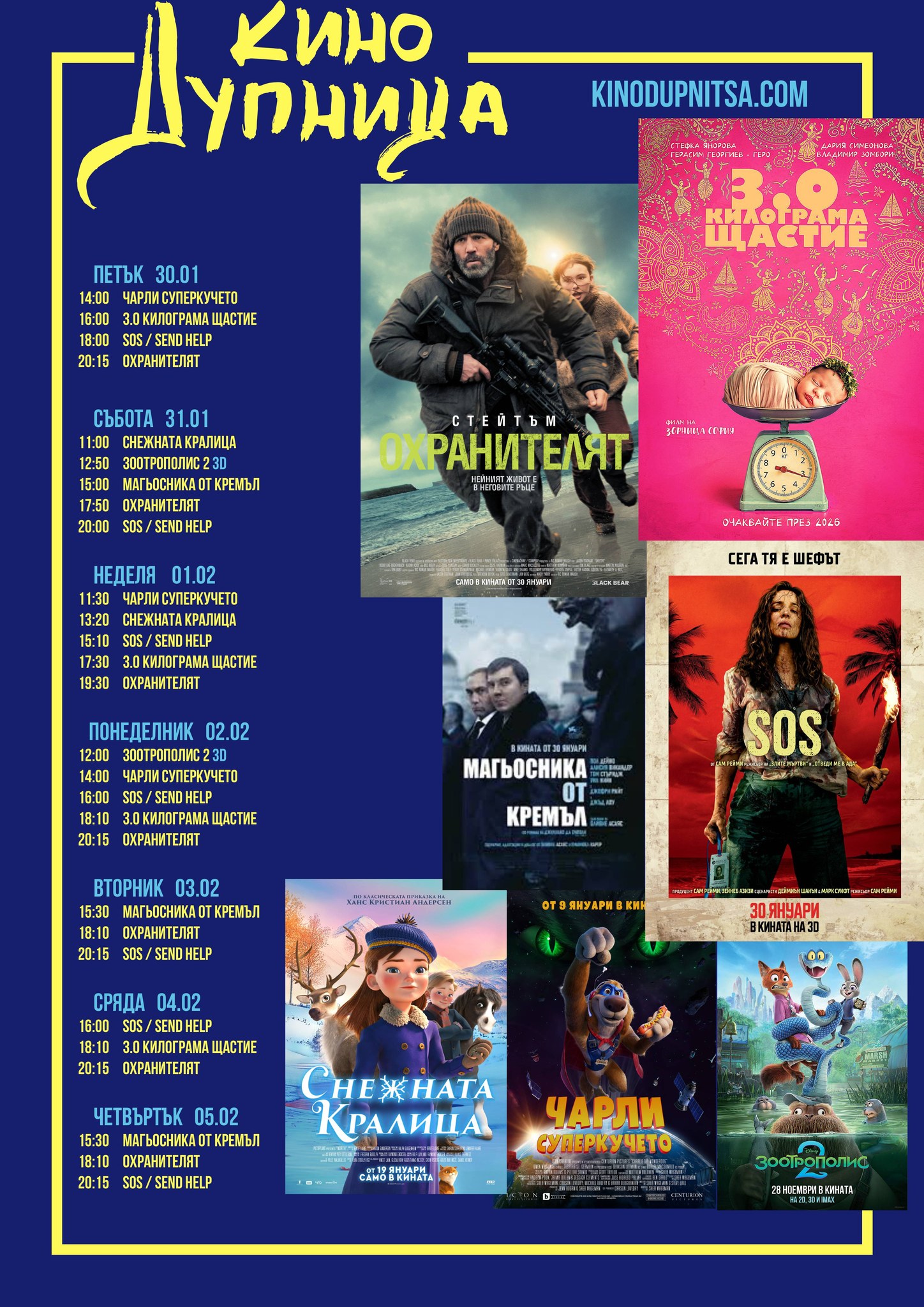 🎥 Кино програма „Кино Дупница" - 30.01 – 05.02.2026 г.