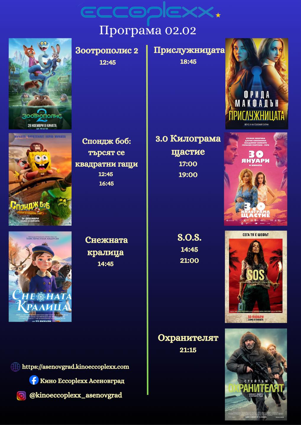 🎥 Кино програма „Кино Eccoplexx Асеновград" - 30.01 – 05.02.2026 г.