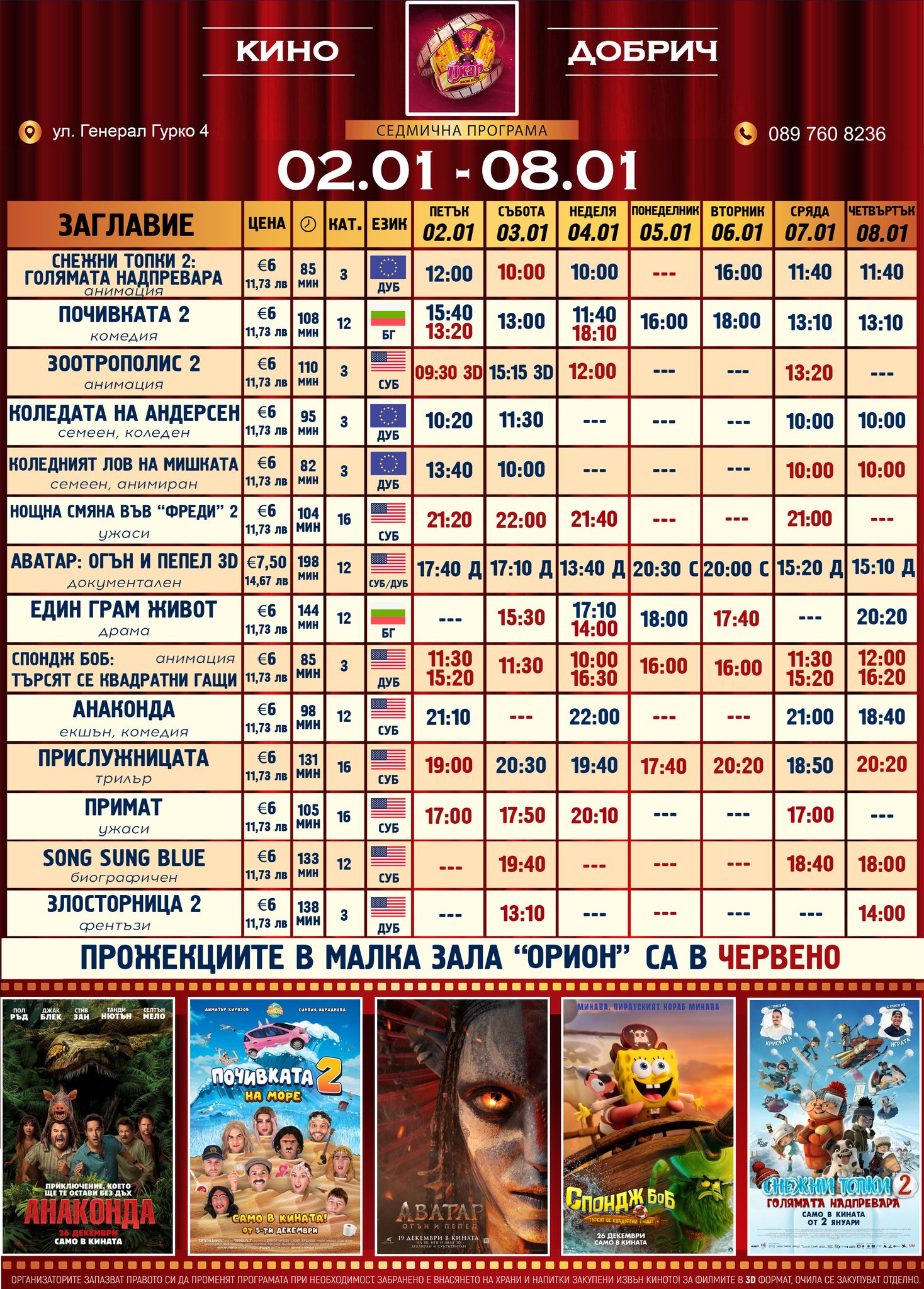 🎥 Êèíî ïðîãðàìà „Êèíî Èêàð Äîáðè÷" - 02.01 – 08.01.2026 ã.