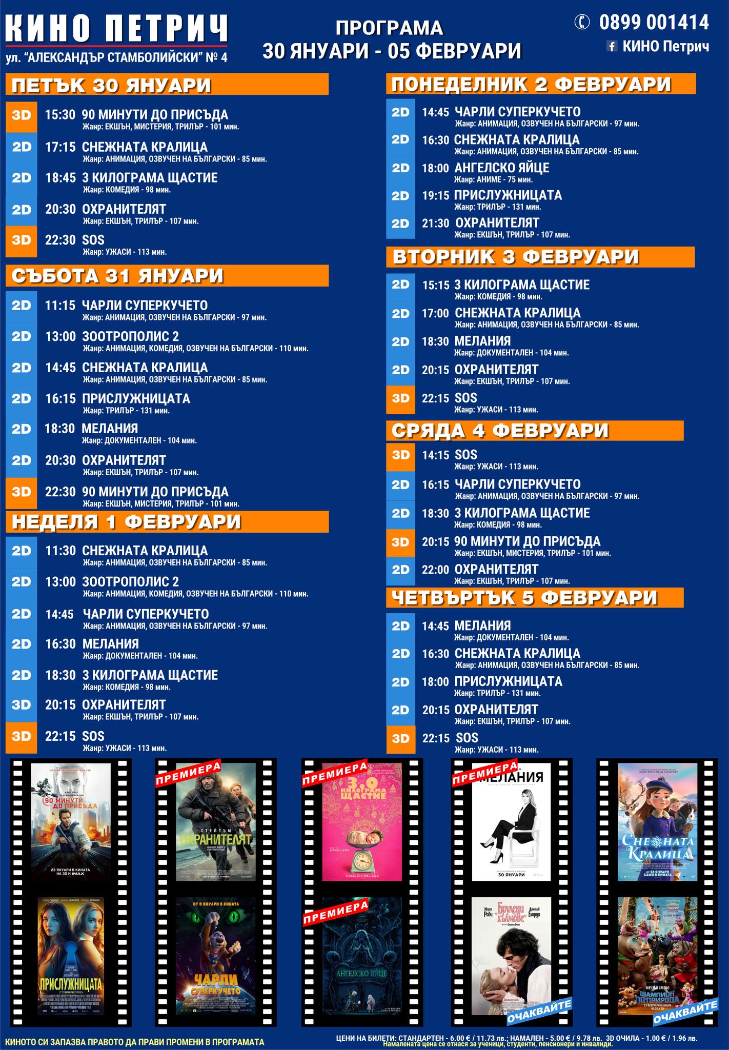 🎥 Кино програма „Кино Петрич" - 30.01 – 05.02.2026 г.