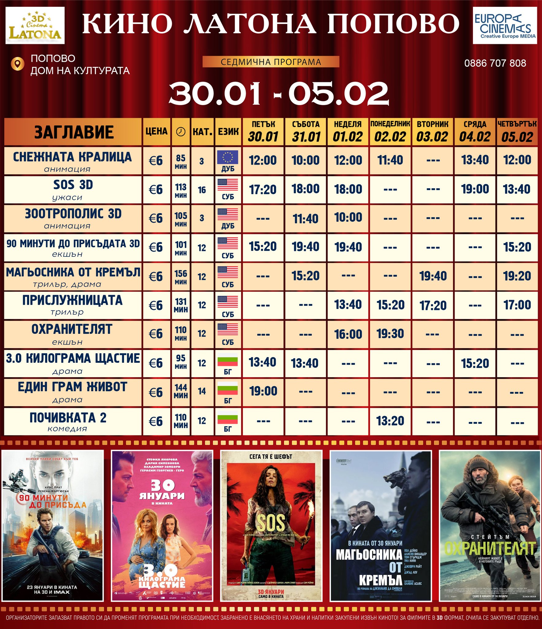 🎥 Кино програма „Кино Попово" - 30.01 – 05.02.2026 г.
