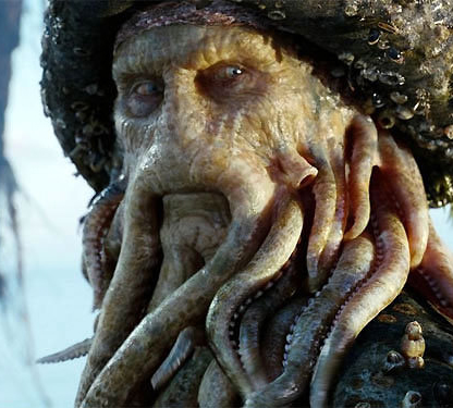 Ужасяващото създание с десетки лигави пипала, което по презумция е нещо средно между човек и октопод, а като герой е капитанът на Летящите холандци е всъщност актьорът Бил Най, обработен с магията на дигиталните технологии на Industrial Light and Magic. Самият Бил е симпатяга на живо, но, за да сме честни, това май е най-запомнящата му се роля, нищо че едва ли бихме го разпознали на улицата..