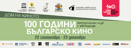 „100 ГОДИНИ БЪЛГАРСКО КИНО - Дискусионен клуб с автограф” е програма на Дома на киното, специално посветена на българското кино и неговия 100-годишен юбилей. Проектът е подкрепен от Програма „Култура” на Столична община и Националния Филмов Център и е с ВХОД СВОБОДЕН за всички зрители.