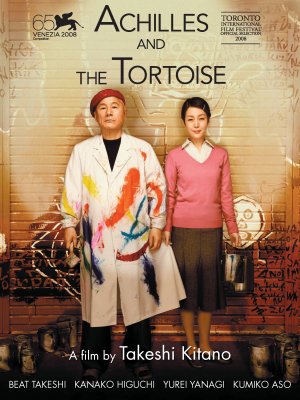 По дух младият Мачису е истински спринтьор, но обстоятелствата се съюзяват против него и го карат да пълзи като костенурка. Лошото в неговия живот е твърде много – баща му банкрутира, доведеният му чичо е грубиян, учителите му се отнасят към него с неприязън; а по-късно, когато пораства, е принуден да води безкрайна борба, за да открие и развие свой индивидуален стил, докато изкарва прехраната си. В заключителните епизоди самият Китано влиза в ролята на Мачису, като през целия филм използва свои картини, за да илюстрира творческите мъки на героя си – и, разбира се, да пародира тенденциите в модерното изкуство. Сложен и оригинален, Ахил и костенурката показва богато шествие от платна на Китано. Въпреки че са предназначени да представят провала на художник-аматьор, тези произведения всъщност са прекрасни.
