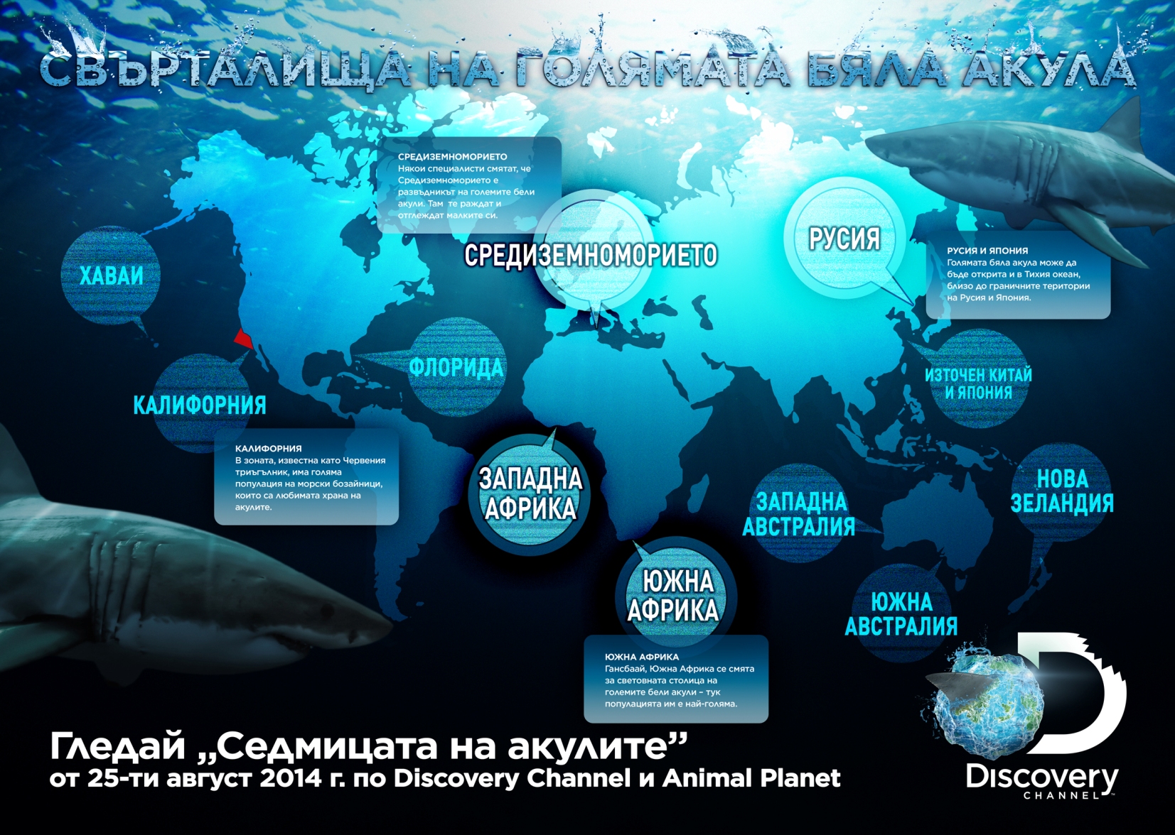 Голямата бяла акула е най-плашещото животно в океана и благодарение на много от популярните филми, които я представят като заплаха, днес големите риби са известни с лошата си слава. Вероятно тези неразбрани същества заслужават по-добра репутация, защото броят хора, загинали при атаки на акули е учудващо нисък. Според статистиката е по-вероятно да ви удари мълния, отколкото да ви убие акула. За да отпразнуваме „Седмицата на акулите” от 25-ти август по Discovery Channel и Animal Planet, сме ви приготвили порция с топ 10 примера в киното, които представят любопитната риба като ужасяващ звяр.