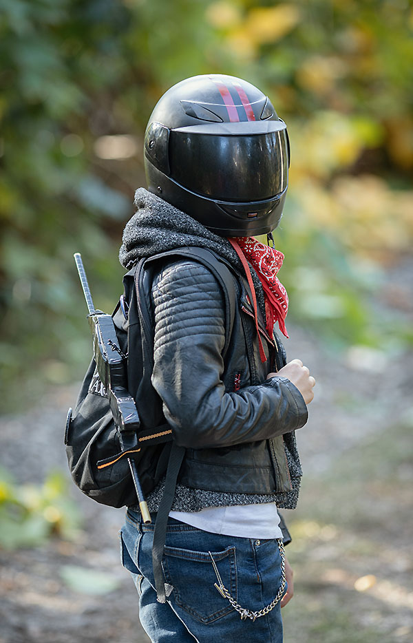 „Байкър“ е разказ за дете, което по цял ден кара колело и не сваля каската си нито за минута. Малчуганът, известен с прякора си Байкър (от англ. biker), живее с майка си и отчаяно се опитва да я убеди да си вземат куче, но тя все отказва. Един ден детето вижда как две момчета измъчват кученце. Успява да спаси животинчето и го скрива в гаража на къщата си. Двамата с кученцето прекарват много време заедно в щастливи игри и се привързват силно един към друг. Момчетата, от които е спасил кучето обаче, търсят отмъщение. Успяват да отвлекат кутрето, като в замяна искат от Байкър неговата каска - много скъп подарък от бащата му, с който никога не се разделя. Въпреки това - размяната е неизбежна, а хулиганите с изненада откриват, че под каската се крие красиво момиченце – Рада. Те все пак ѝ връщат кученцето и си тръгват с каската ѝ. Когато майката на Рада вижда, че дъщеря ѝ е без каска, се умилява и приеме кучето в дома им. Във финалната сцена става ясно, че бащата на Рада е починал, а тя е носела каската като бягство от света. Рада кръщава кучето Рокет, а новият ѝ най-добър приятел връща вярата ѝ в живота.
