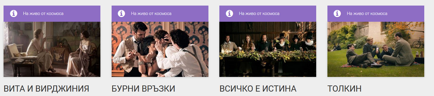 Ще се насладим на екранизации по текстове на Робърт Музил, Станислав Лем, Робърт Харис, Харуки Мураками, Давид Фоенкинос, Ясмина Кадра и много други. Герои в част от филмите са величави фигури от различни епохи и области на изкуството: Вирджиния Улф, Леонардо да Винчи, Никос Казандзакис, Уилям Шекспир, Едмон Ростан, Мишел Уелбек, Карл Лагерфелд, Стиг Ларшон, Дж. Р. Р. Толкин, Пиер Луис... Някои от филмите ще бъдат излъчени в България веднага след като бяха отличени в Кан, Венеция, Торонто и на други престижни световни кинофоруми! Почитателите на Жулиет Бинош, Кейт Бланшет, Никол Кидман, Харви Кайтел, Бен Кингсли, Тим Рот и Клайв Оуен могат да бъдат спокойни. Тази есен CineLibri прави дълбок реверанс към режисьора визионер Стенли Кубрик и музикалната легенда Дейвд Боуи и отбелязва 250 години откакто Александър фон Хумболт измери света.
