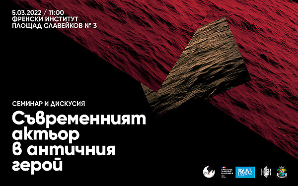 Семинар и дискусия: „Съвременният актьор в античния герой“ 5 март | 11:00-16:00 ч. | Френски институт участват: Камелия Спасова, Слава Янакиева, Петър Горанов и Василена Радева