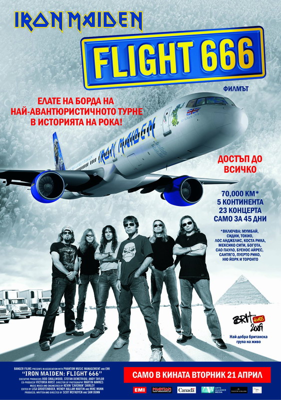 "Iron Maiden: Flight 666" документира първата част от историческото турне на Maiden SOMEWHERE BACK IN TIME WORLD TOUR – 70 000 километра около света, 23 концерта на 5 континента само за 45 дни. Една от звездите на филма е специално пригоденият самолет Boing 757 "Ed Force One", пренасящ групата, целия екип и 12 тона сценично оборудване, пилотиран от сертифицирания пилот и вокалист на бандата Брус Дикинсън. FLIGHT 666 ни показва отблизо нещата на и зад сцената – нещо, което Iron Maiden позволяват за първи път на филмов екип – което гарантира, че тук ще видите най-зрелищните и забележителни кадри в историята на групата.