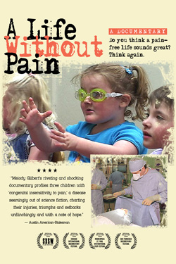 „Живот без болка” разказва за ежедневието на три деца, които в буквалния смисъл не изпитват болка. 3-годишната Габи от Минесота, 7-годишната Мириам от Норвегия и 10-годишната Джамила от Германия имат изключително рядък генетичен дефект, който се среща най-много у стотина души в света.
