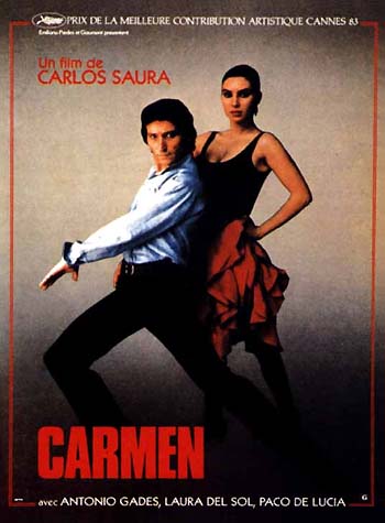 "Саура разполага действието на "Кармен" в съвременността, но силно го стилизира. Музиката е по-скоро коментар, отколкото двигател на събитията. Героите осъществяват наново прочутия сюжет, като се стремят да го разкажат чрез жеста, чрез езика на тялото, чрез танца и сами се оказват заплетени в сходни емоционални отношения. Това придава особена двойственост на филмовото повествование: то е едновременно и "действително", и покрито с воала на нереалното."