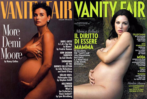Деми Мур беше първата известна личност, която се снимала гола на корицата на списанието в далечната 1991г. и то в напреднала бременност.