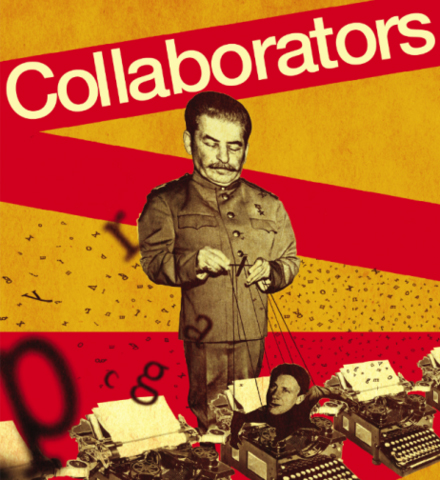 Вдъхновена от исторически факти, пиесата „Сътрудници” е едно нереално пътуване из трескавото въображение на писателя, който се изгубва в страховити и смущаващо забавни отношения с всемогъщия главен герой на своята пиеса.
