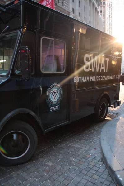 Преди няколко дни, снимачния екип на предстоящия комиксов екшън “Черният рицар: Възраждане”, окупира едни от най-големите улици на Ню Йорк Сити. Снимките на продукцията с бюджет от над 270 милиона долара започнаха преди близо шест месеца под режисурата на Кристофър Нолан, а в главната роля на милиардера Брус Уейн и неговото алтер-его Батман се превъплъщава за трети път носителя на “Оскар”, Крисчън Бейл.