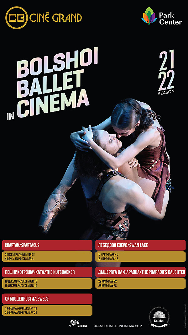 За повече от два века балетната трупа на Болшой се превърна в емблематично име не само за любителите на това прекрасно изкуство. Трупата рядко прави турнета извън Русия, затова най-добрият възможен начин да им се насладим е с излъчванията на постановките в избрани кина по целия свят. След повече от година отлагане, предизвикано от епидемията от Covid-19, тези прожекции ще предоставят възможност на публиката по цял свят, включително и у нас, да им се наслади на това красиво изкуство в пълния му блясък.