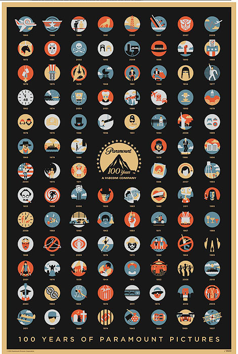Дело на популярното американско арт-студио “Галерия 1988”, плакатът почитащ филмовите заглавия на Парамаунт Пикчърс може да бъде видян на живо само в офисите на служителите на компанията. За сметка на това, версията в интернет е с достатъчно висока резолюция, която позволява на киноманите да разгледат всяка една от общо 104-те иконки и да познаят кои филми са изобразени на тях.