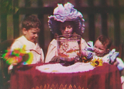 Вероятно най-старите цветни филми бяха преоткрити от National Media Museum в Брадфорд, Англия. Датирани към 1901-1902 г., лентите изобразяват цветни кадри на малко момиченце и две момчета в едуардианско облекло, играещи си със слънчогледи на маса, върху която се вижда и кръгъл аквариум със златна рибка.