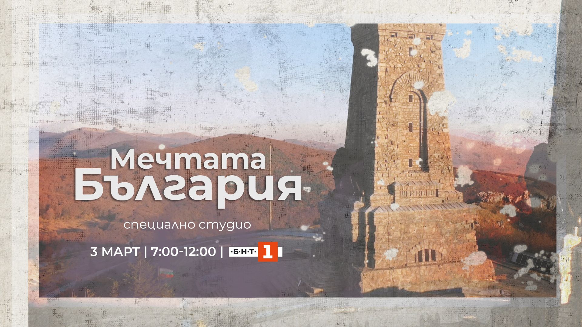 На 3 март, понеделник, по БНТ 1 от 7:00 ч. до 12:00 ч. гледайте специалното студио „Мечтата България“ с водещи Боряна Граматикова („Отблизо“) и Димитър Стоянович („Култура.БГ“). Анна Ангелова („Библиотеката“) и Йордан Димитров („България от край до край“) ще предават атмосферата от тържественото отбелязване на националния празник на живо от връх Шипка.