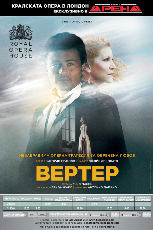 Произведението на прочутия френски композитор е изпълнено с лирична красота, страст и емоционален плам и нищо чудно, че „Вертер“ е смятана за връх в неговото творчество. Музикалният директор на Кралската опера Антонио Папано дирижира постановката, а Беноа Жако е нейн режисьор. Италианският тенор Виторио Григоло е Вертер, а оперната дива Джойс Дидонато влиза в ролята на Шарлот за първи път.