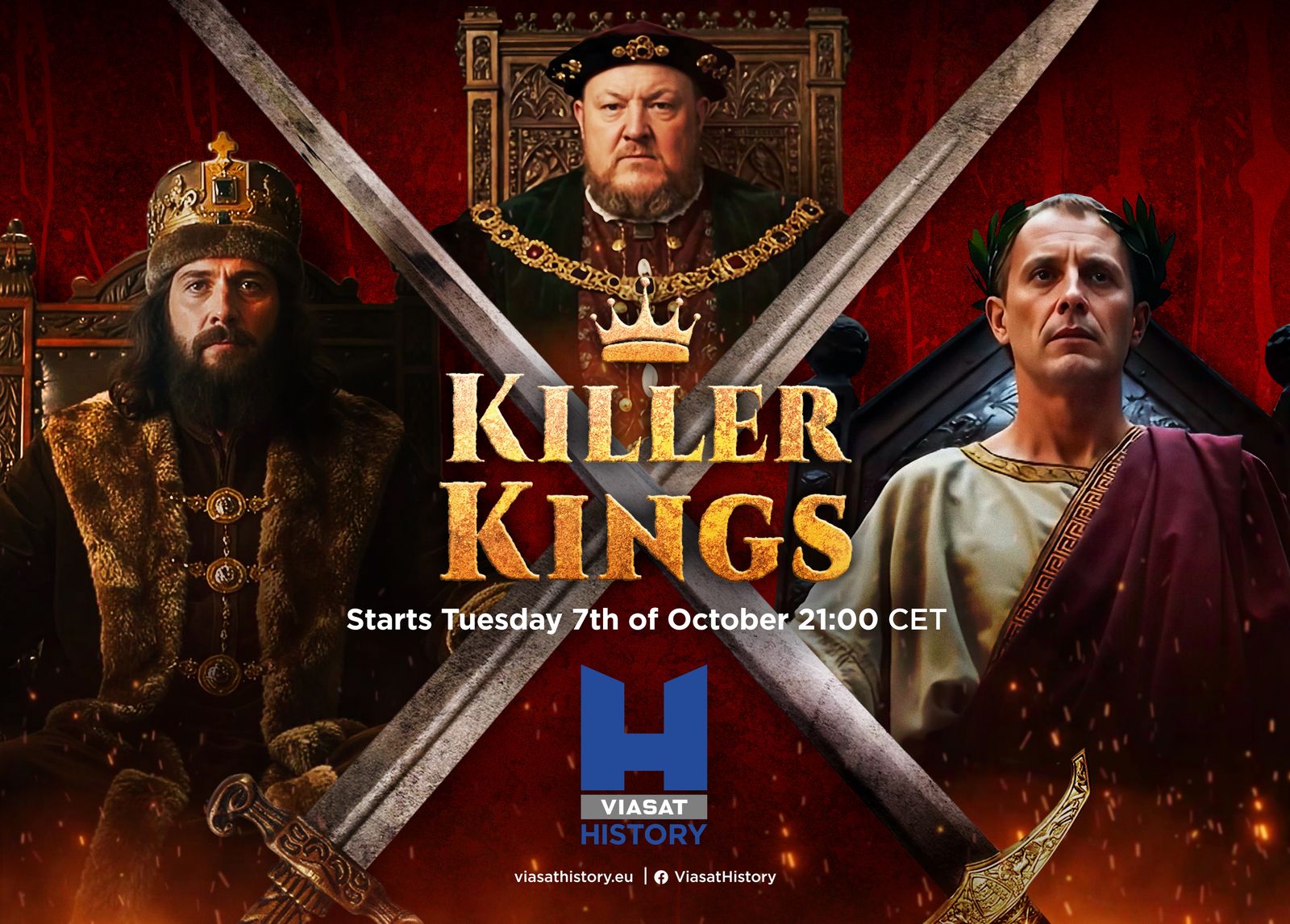 През октомври Рим, Йерусалим, Киев, Москва, Лондон, Нотингам, Руан и Париж оживяват по Viasat History. Виждаме бойните полета, кралските дворове, героите и градовете и разкриваме истината зад митовете и легендите за Калигула, Иван Грозни, крал Хенри VIII, крал Джон II на Англия, Нерон и Ирод, царят на евреите. „Владетели убийци“ дебютира всеки вторник в 22:00 ч. от 7 октомври.