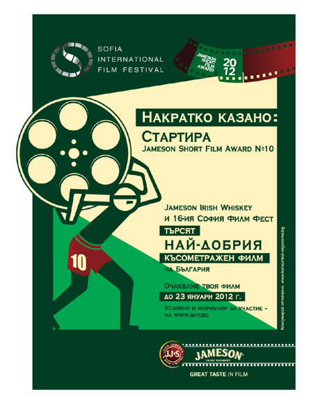 Легендарният JAMESON SHORT FILM AWARD се завръща за десета поредна година в България в търсене на нови впечатляващи таланти на Седмото изкуство. Вече далечната 2003 година ще остане в историята на киното у нас със създаването на един от най-успешните конкурси за късометражни филми.