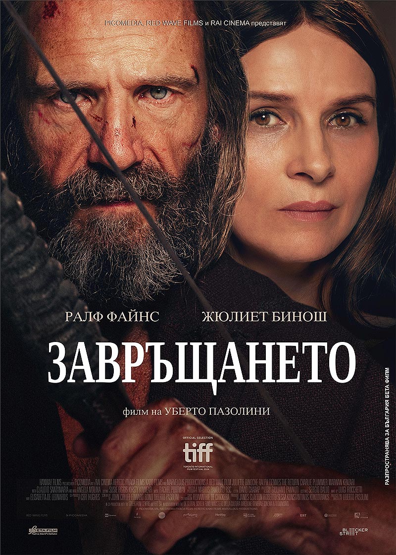 Царят на Итака е изтощен, неразпознаваем, но трябва да се изправи срещу миналото си, за да намери сила да спаси семейството си и да спечели обратно изгубената си любов. Ключът към „Завръщането“ е драмата на един смазан от съдбата си мъж и връзката с най-близките му хора, които той е изоставил в търсене на слава и признание. Силата на актьорското присъствие на Файнс е безспорно помитаща, а Бинош притежава изключителните качества на актриса, която може да превърне всяка героиня в уникална, неповторима жена – и точно това е образът на Пенелопа, която са си представяли стотици поколения почитатели на Омир. Взаимодействието между двамата, което помним от наградения с „Оскар“ за най-добър филм „Английският пациент“, присъства и в тази дълбоко интуитивна и съзерцателна творба на Уберто Пазолини, който ще има възможност лично да представи филма си в София.