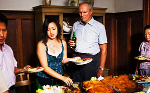 Културната идентичност и специфика на хмонгския свят най-отчетливо се проявява в „Гран Торино” в ключовия епизод при събирането на клана и поканата на Сю към Ковалски да изпие по бира в съседната къща. Особено силно е акцентирано върху конституирането на храненото, трапезата, изобилието на всевъзможни ястия. Този елемент е от съществена значимост за общности принадлежащи към ареала на Югоизточна Азия, защото има централна ролева функция и сакрализирано конотира здравите и устойчиви връзки във фамилята – или т.нар киншип (kinship 16 ). Сцената е ключова и с присъствието на хмонгския шаман – изключително характерна фигура за религиозната обредност 17 на хмоните. Шаманът - хмоните го наричат Siv Yis, букв. Човек, който може да лекува, Господар на духовете. Великолепно изобразен в „Гран Торино”, той е носител на абсолютната теофания, която отвежда Уолт Ковалски не просто до състояние на катарзис, но и до състояние на дълбока скрита йерофания, чрез акта на разкриване и разбиране на чуждата mysterium tremendum 18 .