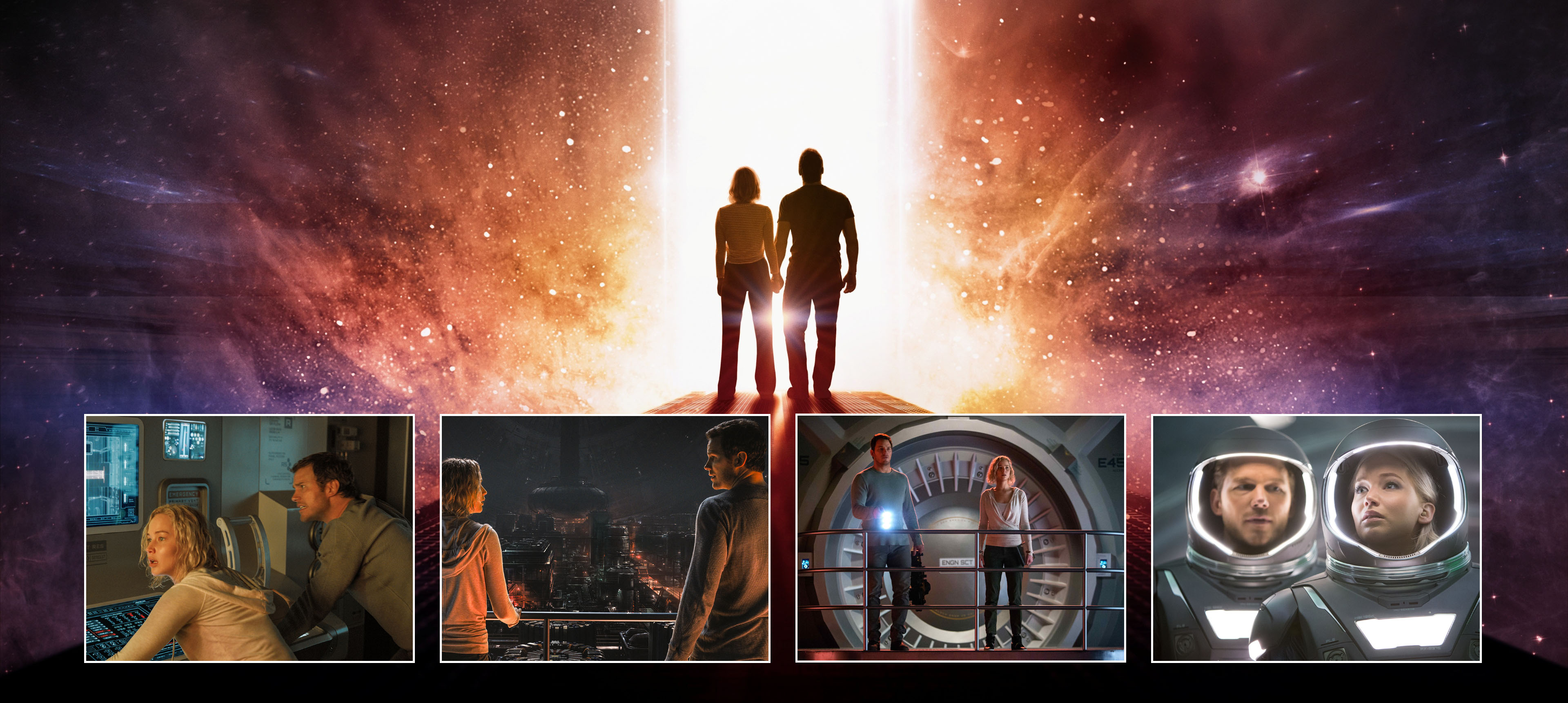 Историята протича в затворено пространство и подобно на театрална пиеса, водещо място в нея заемат диалозите. Тук е може би мястото да се подчертае забележителната работа на филмовия дизайнер Гай-Хендрикс Диас, познат на зрителите от последните издания на франчайзите „Матрицата“ (2003) и „Индиана Джоунс“ (2008). С необичайната си форма, вдъхновена от формата на липовия цвят, неговият „Авалон“ е различен от познатите космически превозни средства. Вътрешността му прилича на круизен кораб с различни по стил помещения: от японска зен-градина, през футуристична закусвалня до впечатляващ „art-déco“ бар и допринася за реалистично-фантастичната обстановка, в която се развива историята.