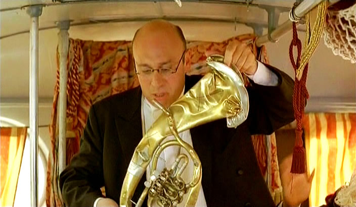 По време на пътуването новият член на оркестъра – разсеяният тимпанист Теди, неусетно се влюбва в младата Мария. Тяхната зараждаща се връзка се следи от целия състав на операта и скоро двамата са въвлечени в сложна плетеница от бившите любови и настояща завист между членовото на трупата. Докато километрите летят, в автобуса се развихря купон, музикантите свирят и пеят – празнуват раждането на сина на шофьора.