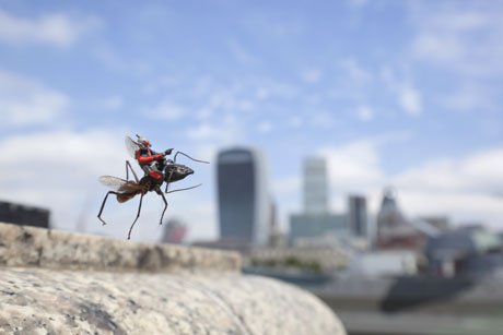 Последната серия миниатюри на Slinkachu показват АНТ-МЕН в битка с Йелоуджакет, на гърба на летяща мравка и оглеждайки града за опасности.