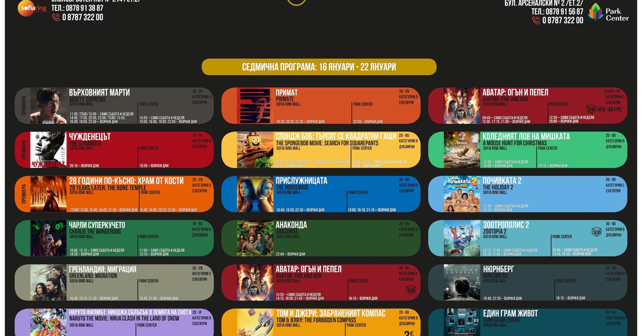😈 Прислужницата – напрегнат трилър със Сидни Суийни и Аманда Сайфред 🐶 Чарли Суперкучето – забавно анимационно приключение за малки и големи 🦊 Зоотрополис 2 – 3D – ново мистериозно разследване с Джуди и Ник 🍍 Спондж Боб: Търсят се квадратни гащи – смях и приключения под водата 💔 Един грам живот – силна българска драма, вдъхновена от реални събития 🐒 Примат – ужасяващ трилър, в който домът се превръща в капан 🌍 Гренландия: Миграция – борба за оцеляване след края на света 🔥 Аватар: Огън и пепел – 3D (субтитри) – нова заплаха, нова епична битка 😂 Почивката 2 – море, ракия и пълен хаос с Бай Иван и компания 📅 Вижте пълната програма с дати и часове на прикачения постер 🎟 Очакваме ви в Кино Дупница – емоциите започват тук! 🍿✨