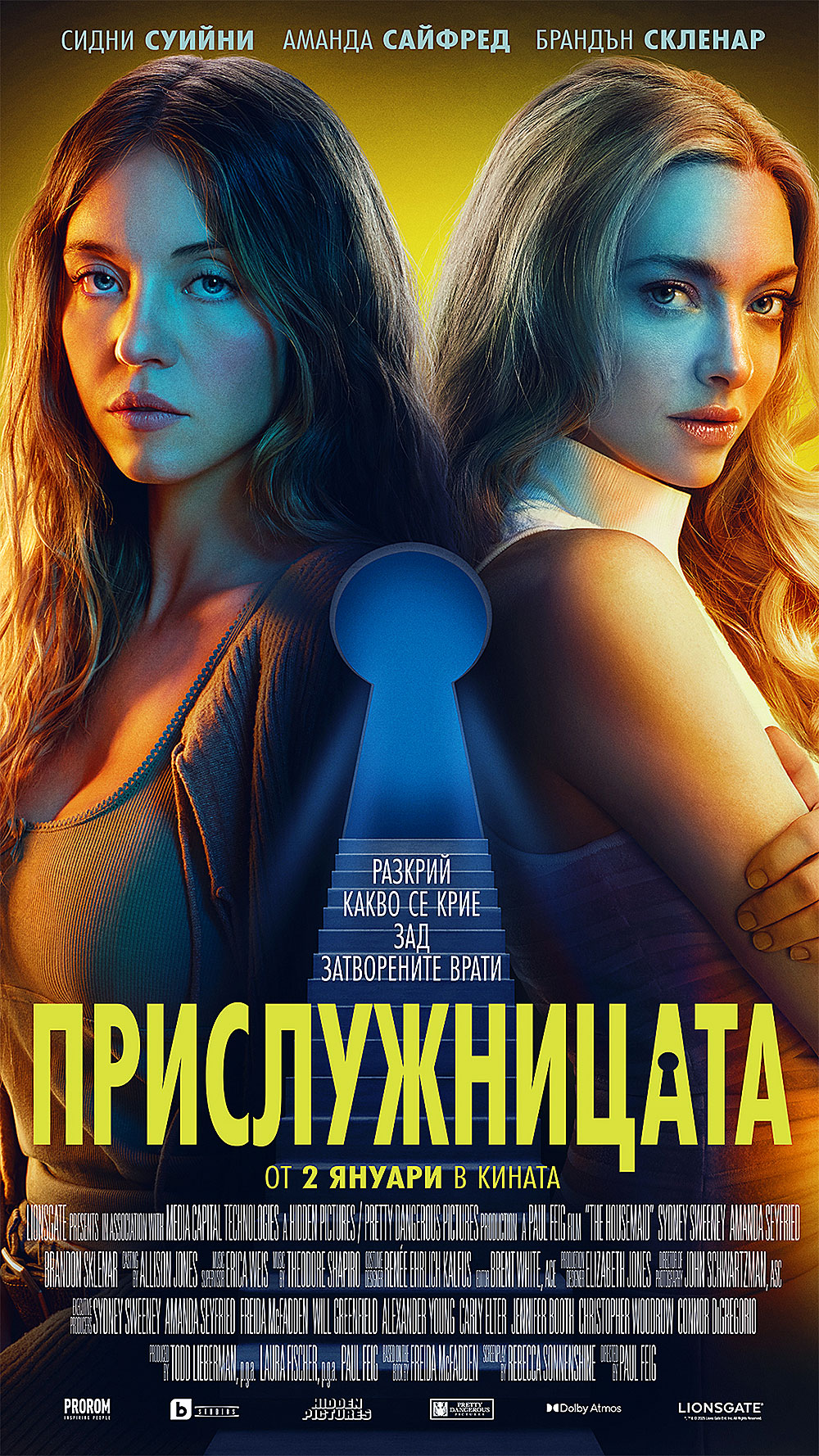 „Прислужницата“ е непредсказуем трилър с участието на Сидни Суийни и Аманда Сайфред, създаден по едноименния бестселър на Фрида Макфадън.