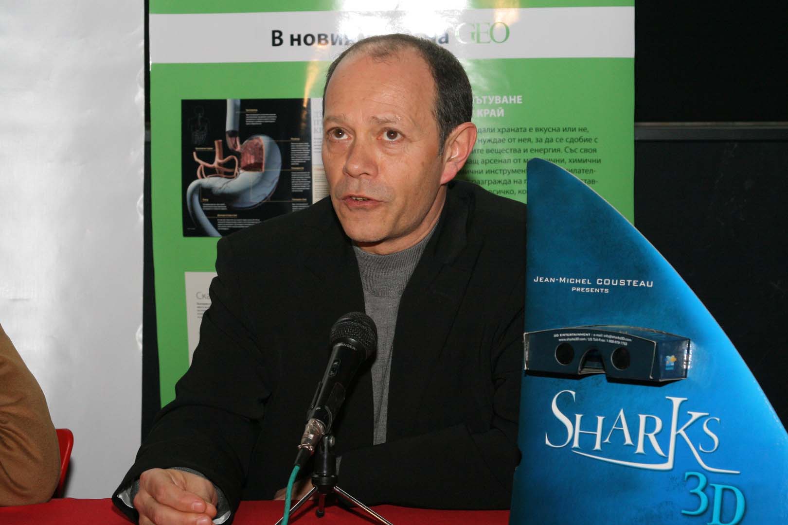 Режисьорът на „Акули 3D” Жан-Жак Мантело и композитора на музиката Кристоф Жаклин, които са на посещение днес в София по повод премиерата на филма, дадоха пресконференция в мултиплекс Cinema City, от който кинотеатърът Mtel IMAX е част.
