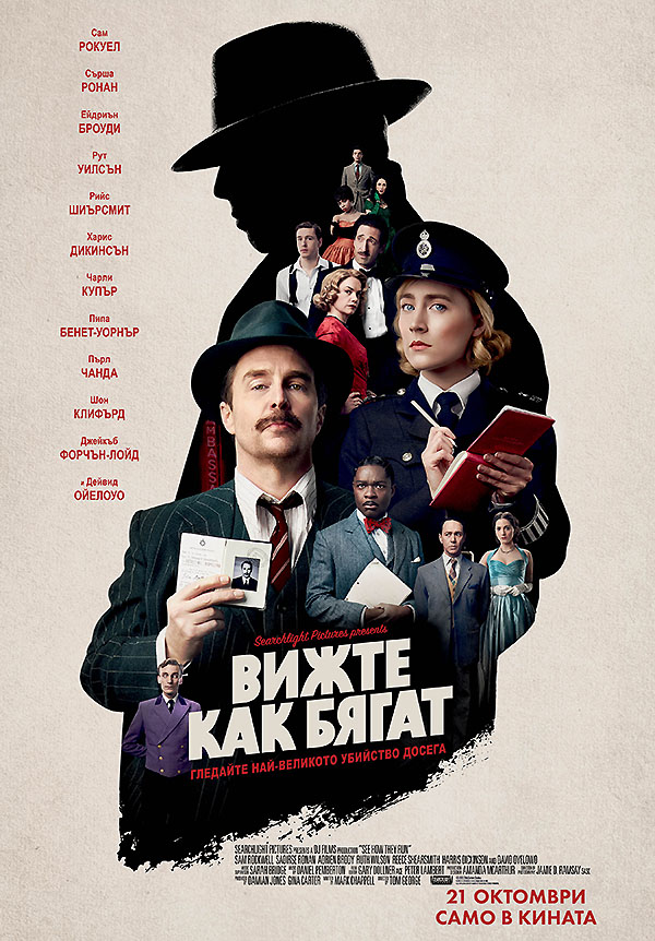 Кой не обича криминални мистерии? А какво по-добро от мистерия с убийства, развиваща се на фона на една от най-известните мистерии с убийство в света? Този октомври, само в кината, плеяда от звезди, начело с носителите на „Оскар“ Сам Рокуел, Сърша Ронан и Ейдриън Броуди, ще ни отведат в Лондон през 50-те години на ХХ в., където ще ни направят свидетели на пленяващата „whodunit“ комедия Вижте как бягат. Готови ли сте за най-великото убийство досега? В лондонския Уест Енд подготовката за осъществяване на киноверсия на успешната театрална пиеса Капан за мишки рязко приключва, след като прочутият, но не особено благовъзпитан холивудски режисьор на филма е убит. Когато отегченият от живота инспектор Стопард (Сам Рокуел) и пълната с енергия новобранка полицай Стокър (Сърша Ронан) се заемат със случая, двамата потъват в изпълнения с редица чудатости свят на бляскаво нечистия театрален ъндърграунд и трябва да преодолеят своите крещящи различия, за да успеят разкрият убиеца, преди да е станало твърде късно.